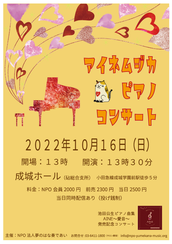 チケット:3,000円(夢のはな奏であい会員2,800円)